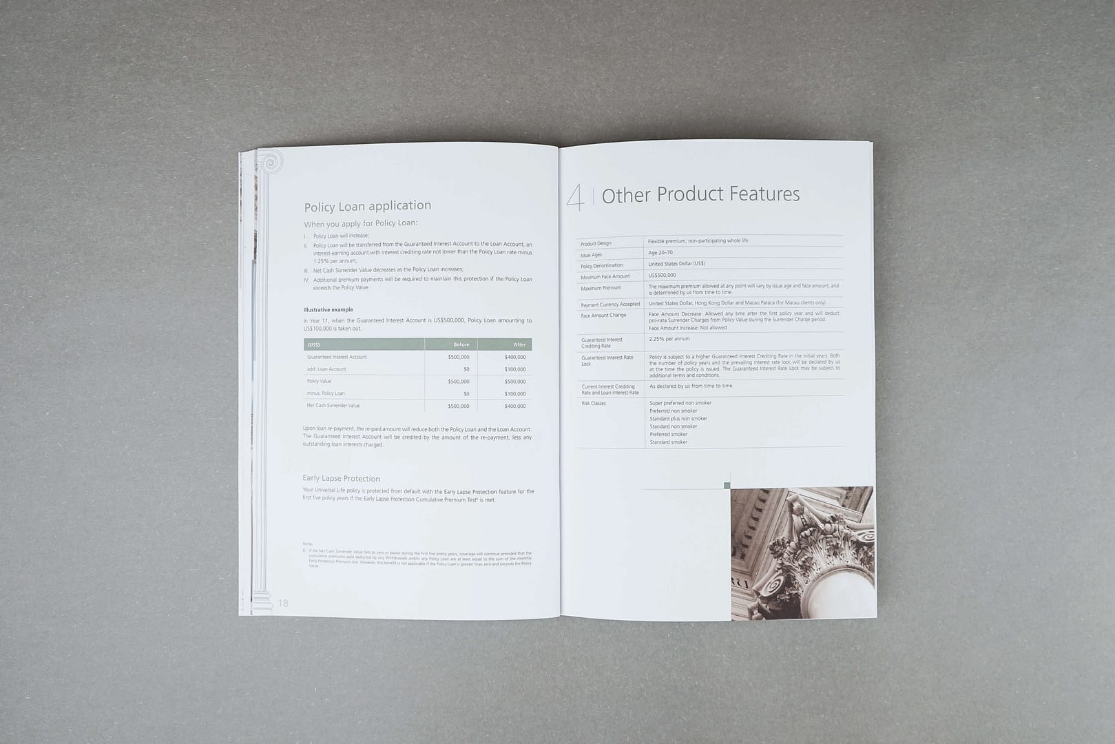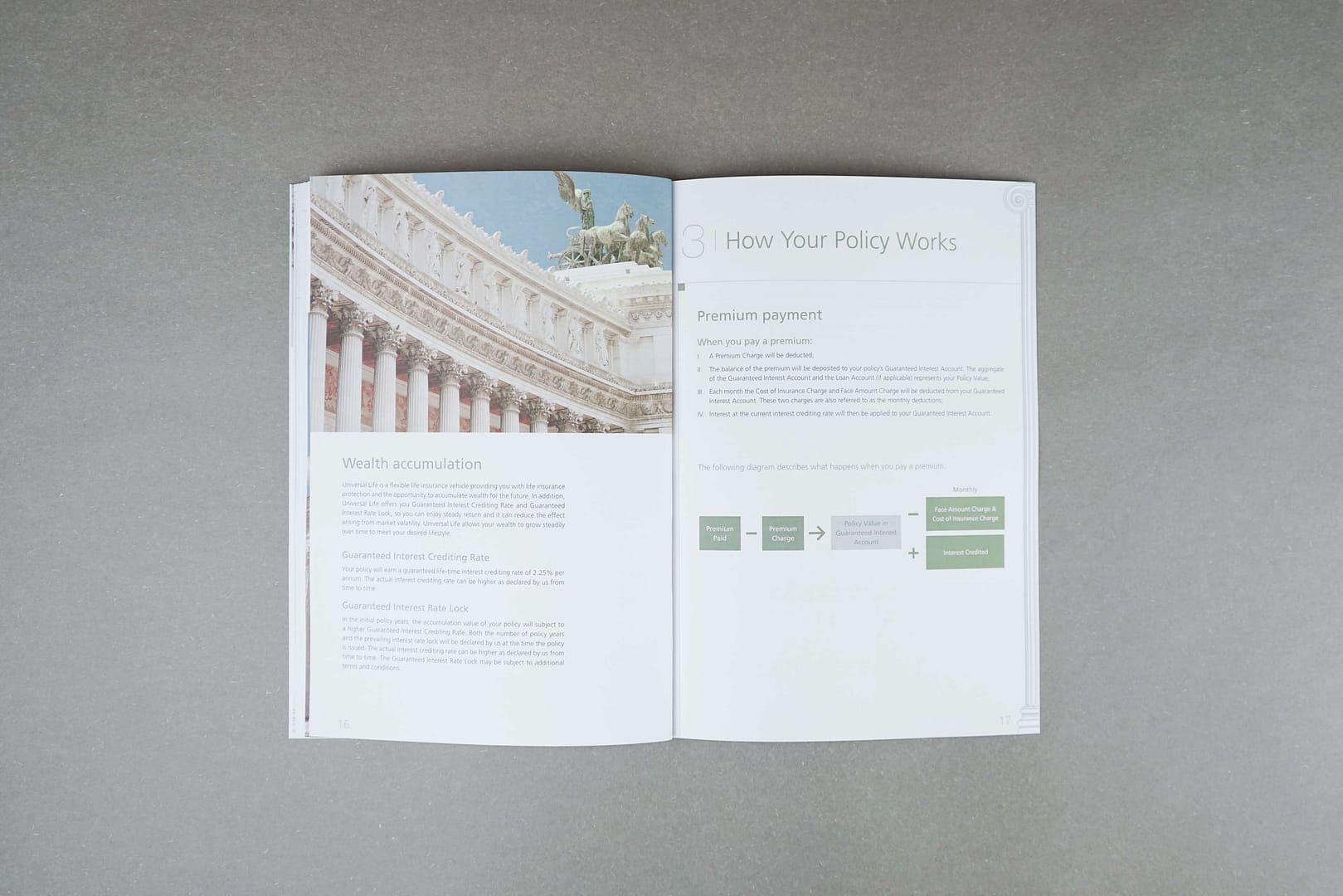 Product brochure design for a multinational insurance company. It was created based on the concept of the legacy of the Roman.