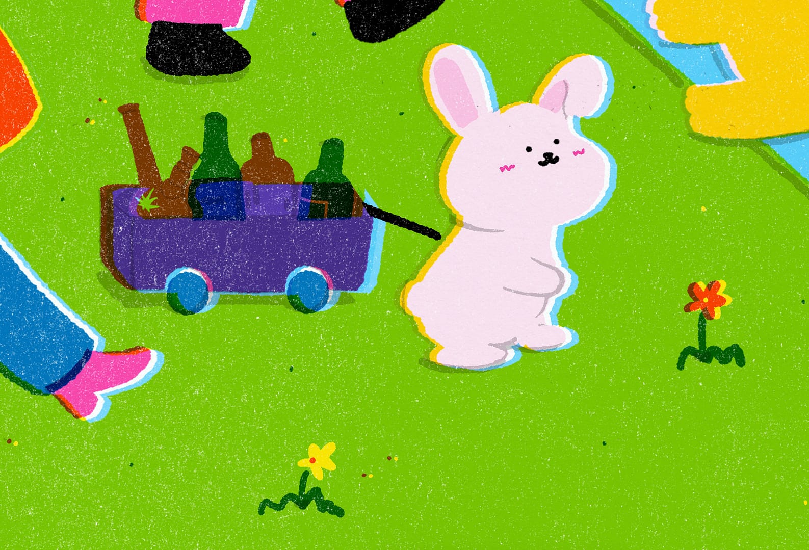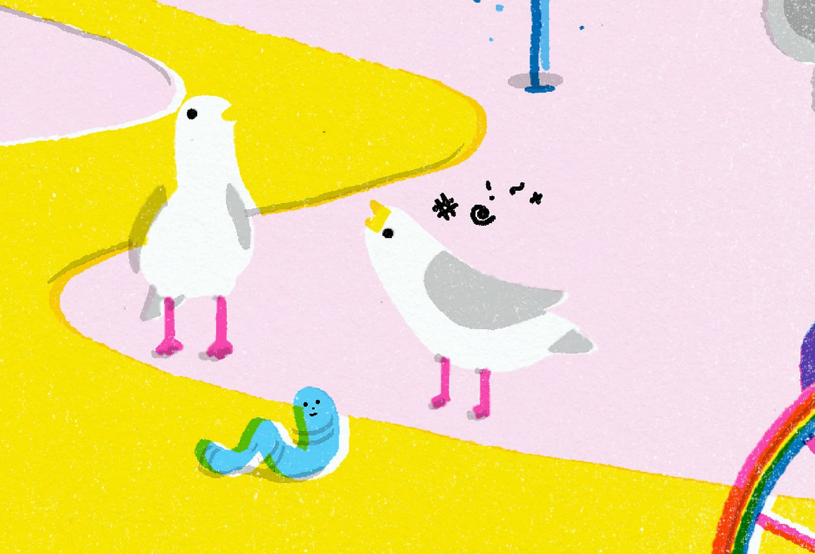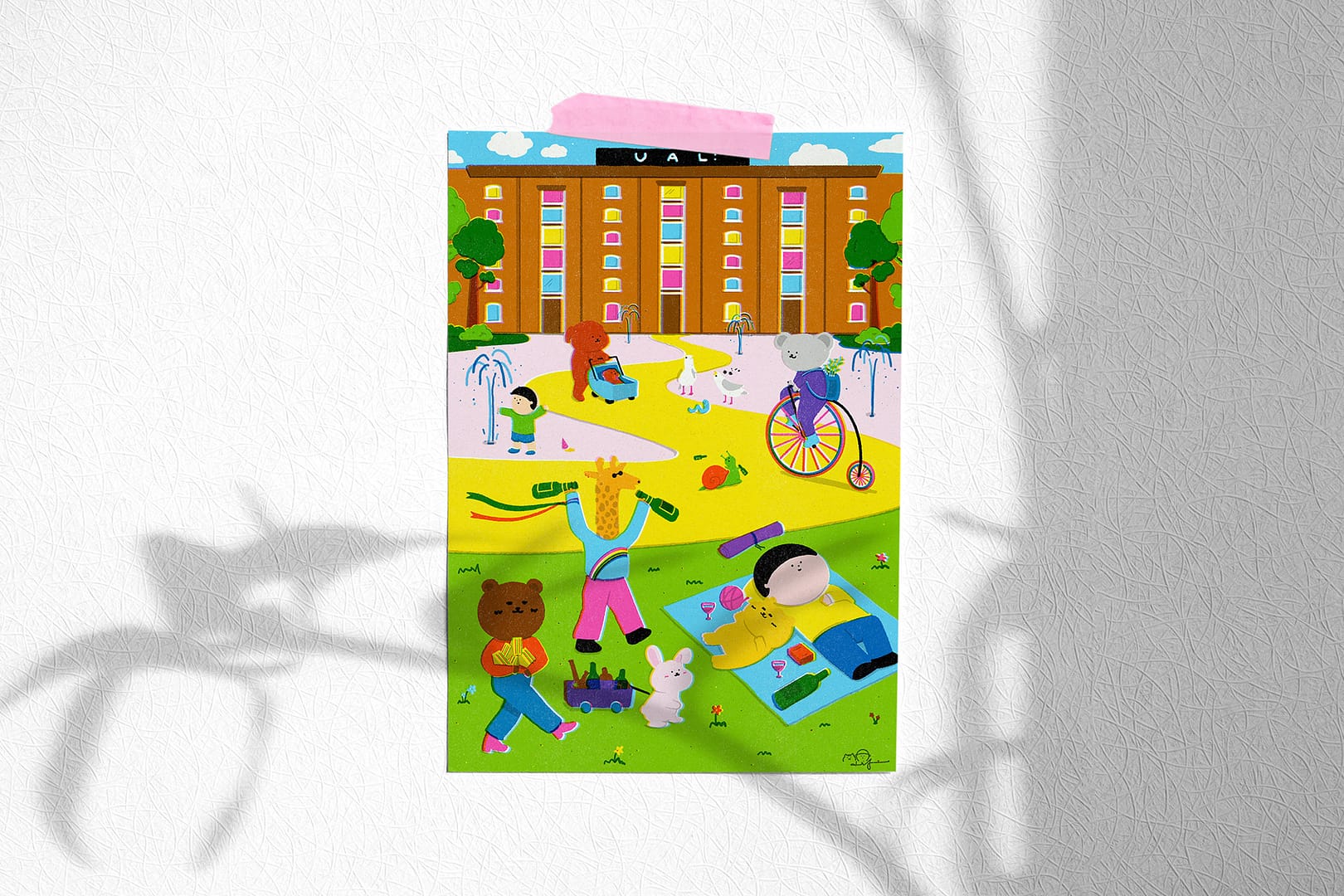 The design concept revolves around ‘little moments’ at Central Saint Martins, UAL – the small, everyday experiences that make up the larger narrative of a student’s life. I want to celebrate these moments by highlighting them in a humorous approach. I hope to capture the essence of being a student at UAL and create a colourful and light-hearted memory for the graduation.