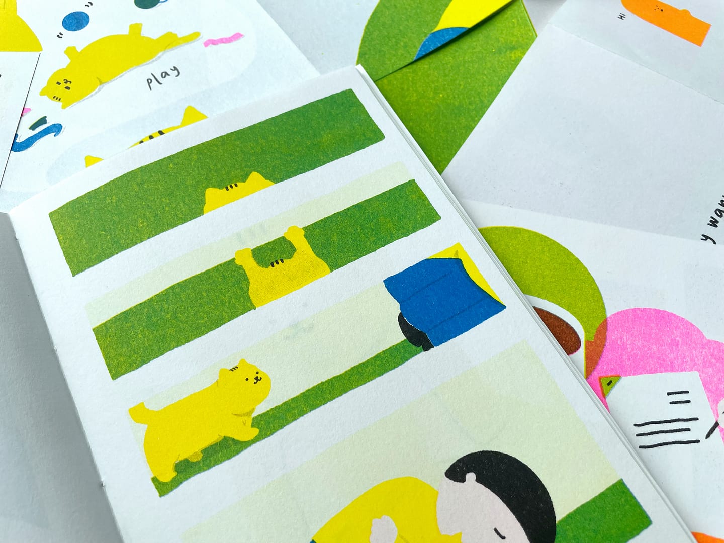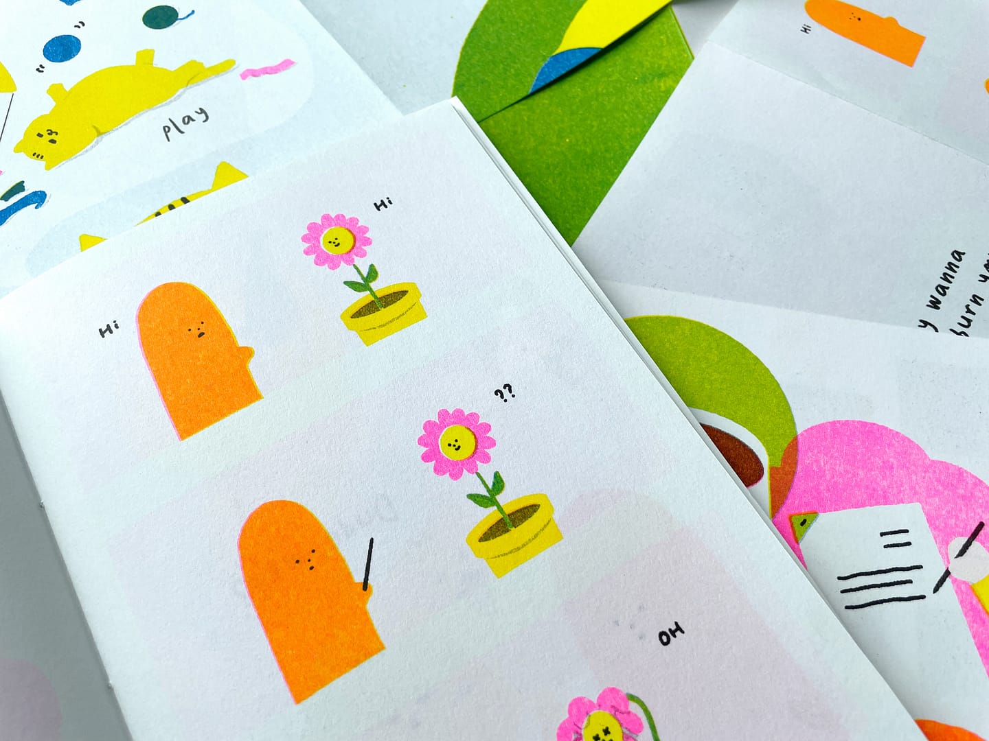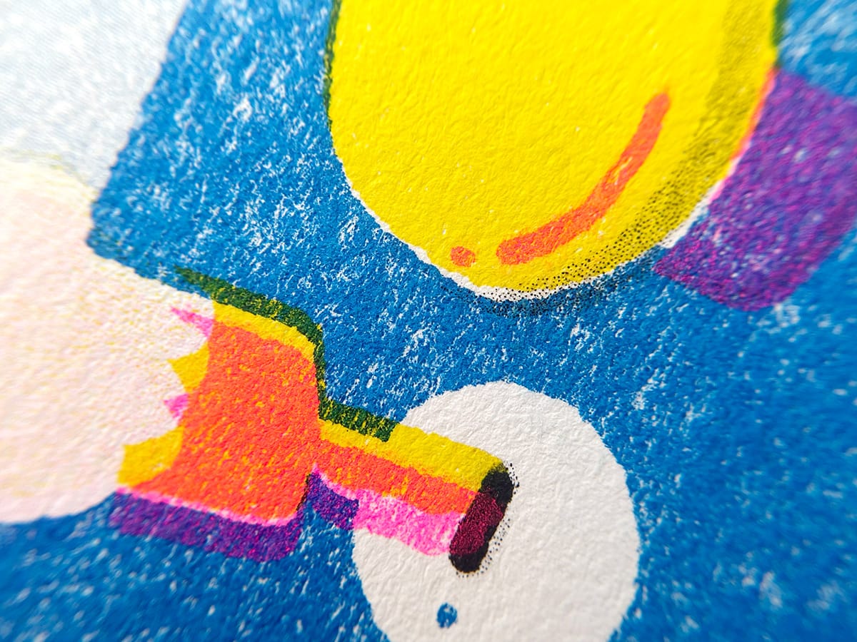 It was pretty challenging to print the whole illustration book with Riso. We had to be aware of the pages, layout and the colours. The book had to be hand bound, and the accuracy and details were carefully taken care of. Despite the challenges, it was a very fun project!